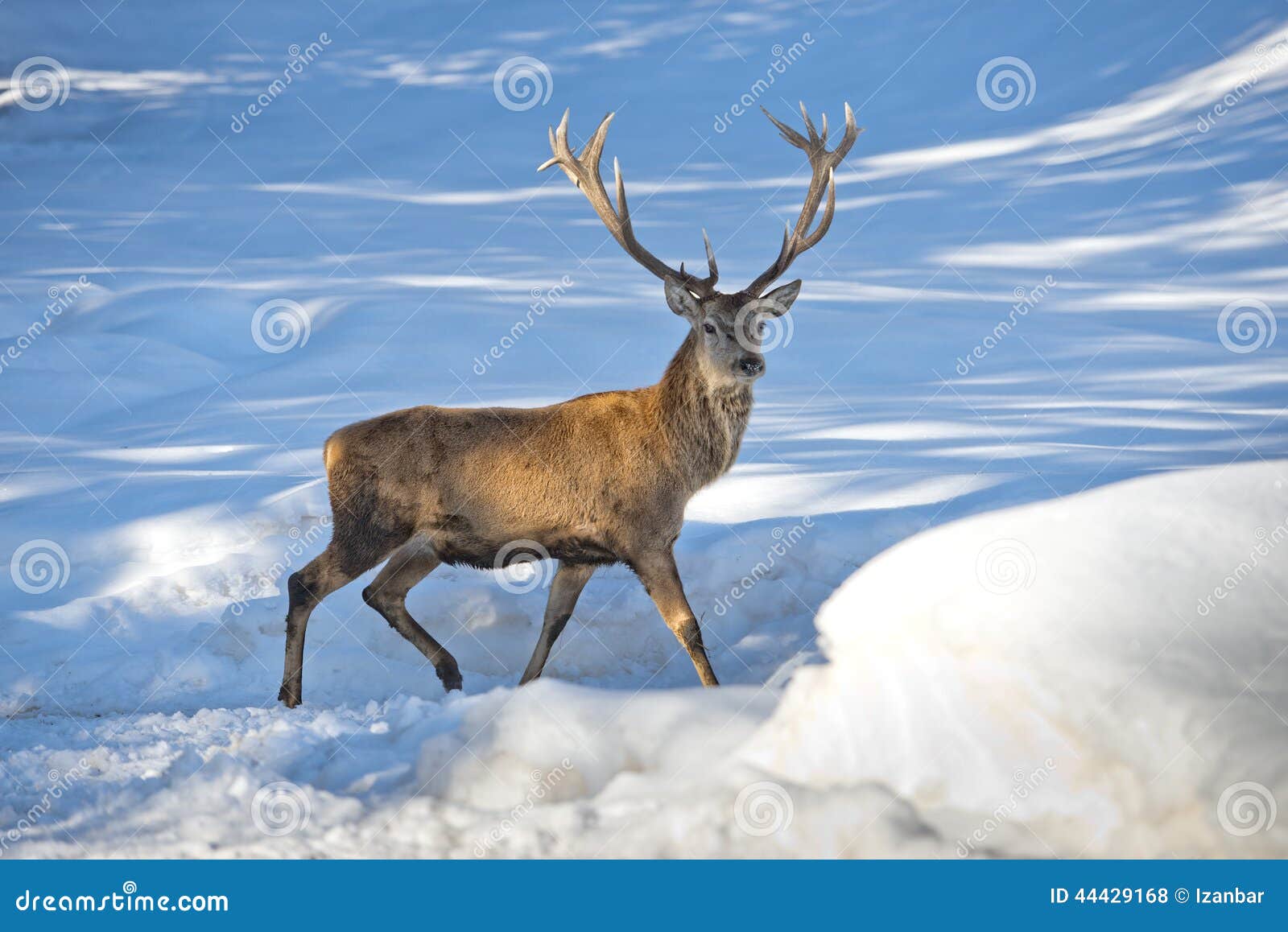Deer On The Snow Background Stock Photo - Image Of Antlers, Wild: 44429168